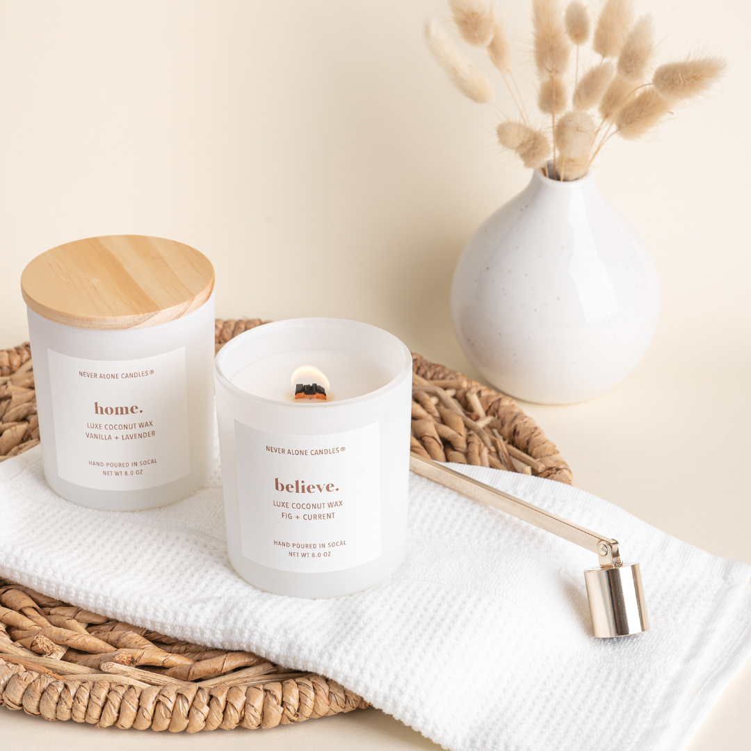 Light one of our long-lasting candles and close your eyes as its cozy, crackling wick creates instant calm in your day. Guaranteed to fill your house with soothing or invigorating aromas that last down to the very last light.