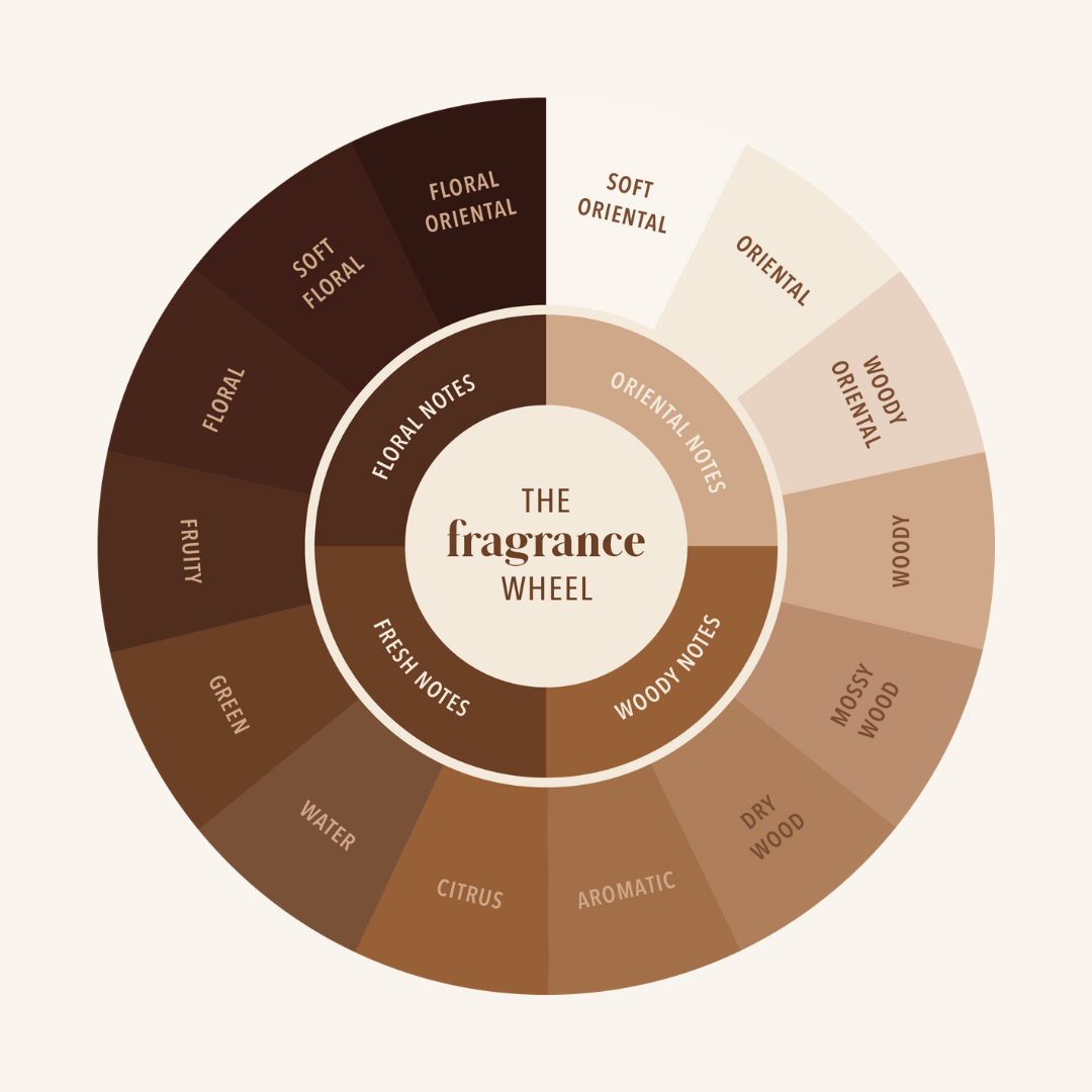 The fragrance wheel helps you understand the relationship between scent families like floral, fresh, woody and oriental. By exploring this guide, you can discover which scent families resonate most with you and fins new blends to try.